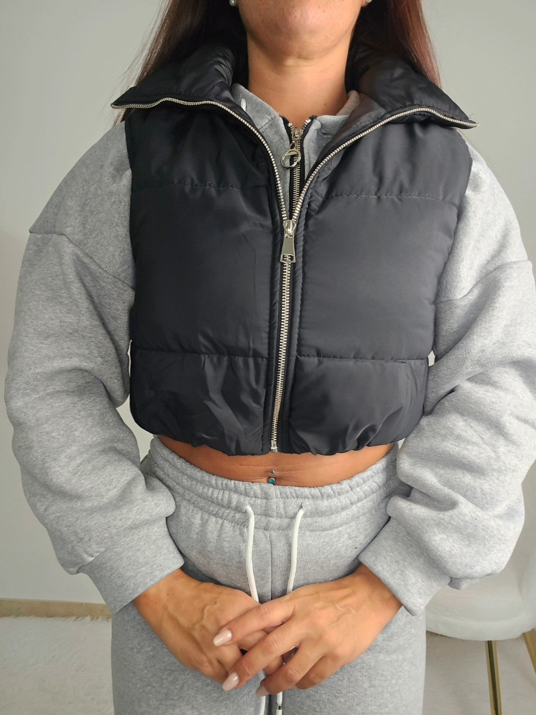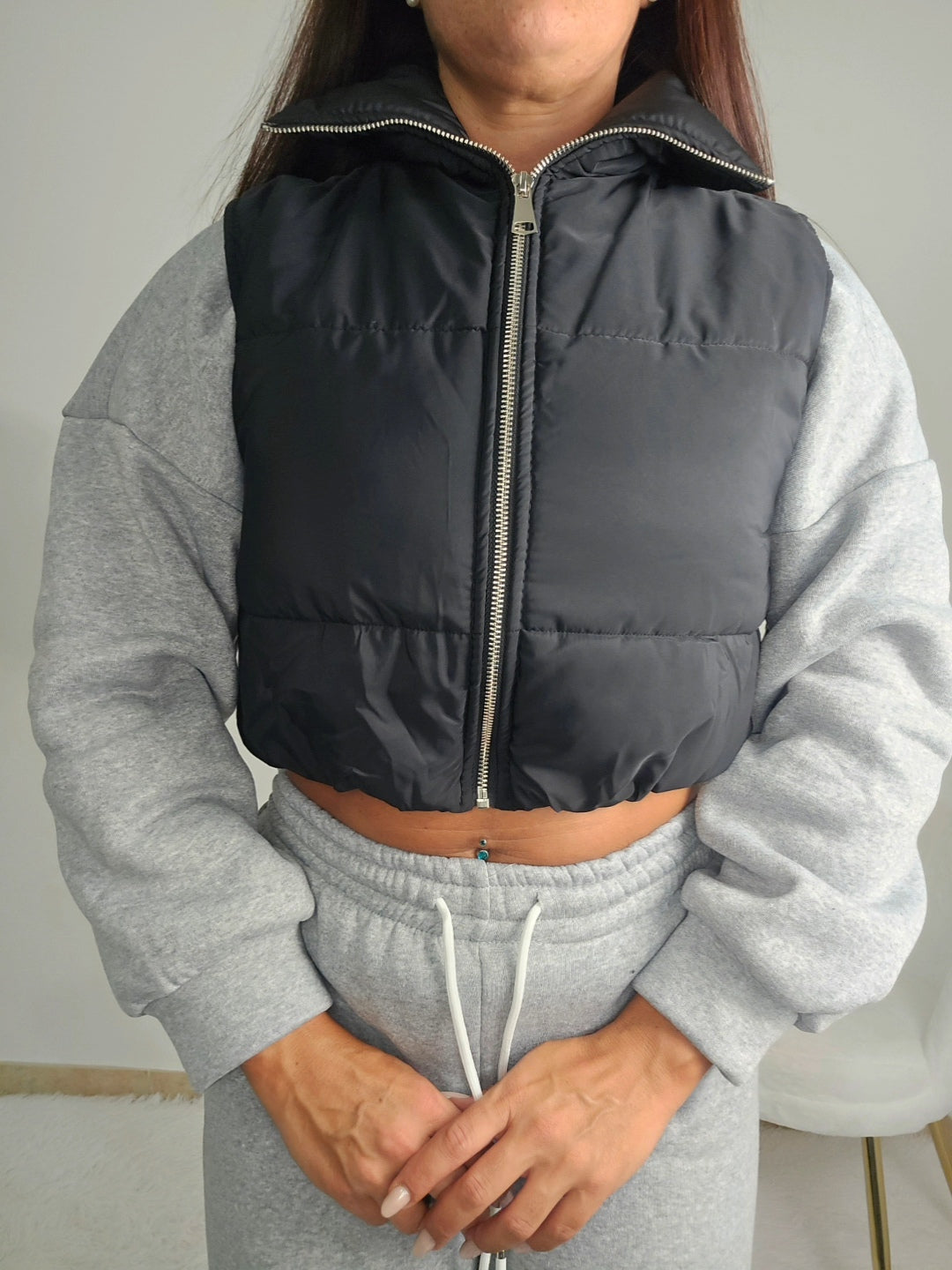 Il bomberino smanicato è ideale per la mezza stagione, combinando funzionalità e stile. Dotato di elastico in vita per una vestibilità aderente e chiusura con zip, si adatta perfettamente a look casual o sportivi, offrendo comfort e praticità senza rinunciare all’eleganza.