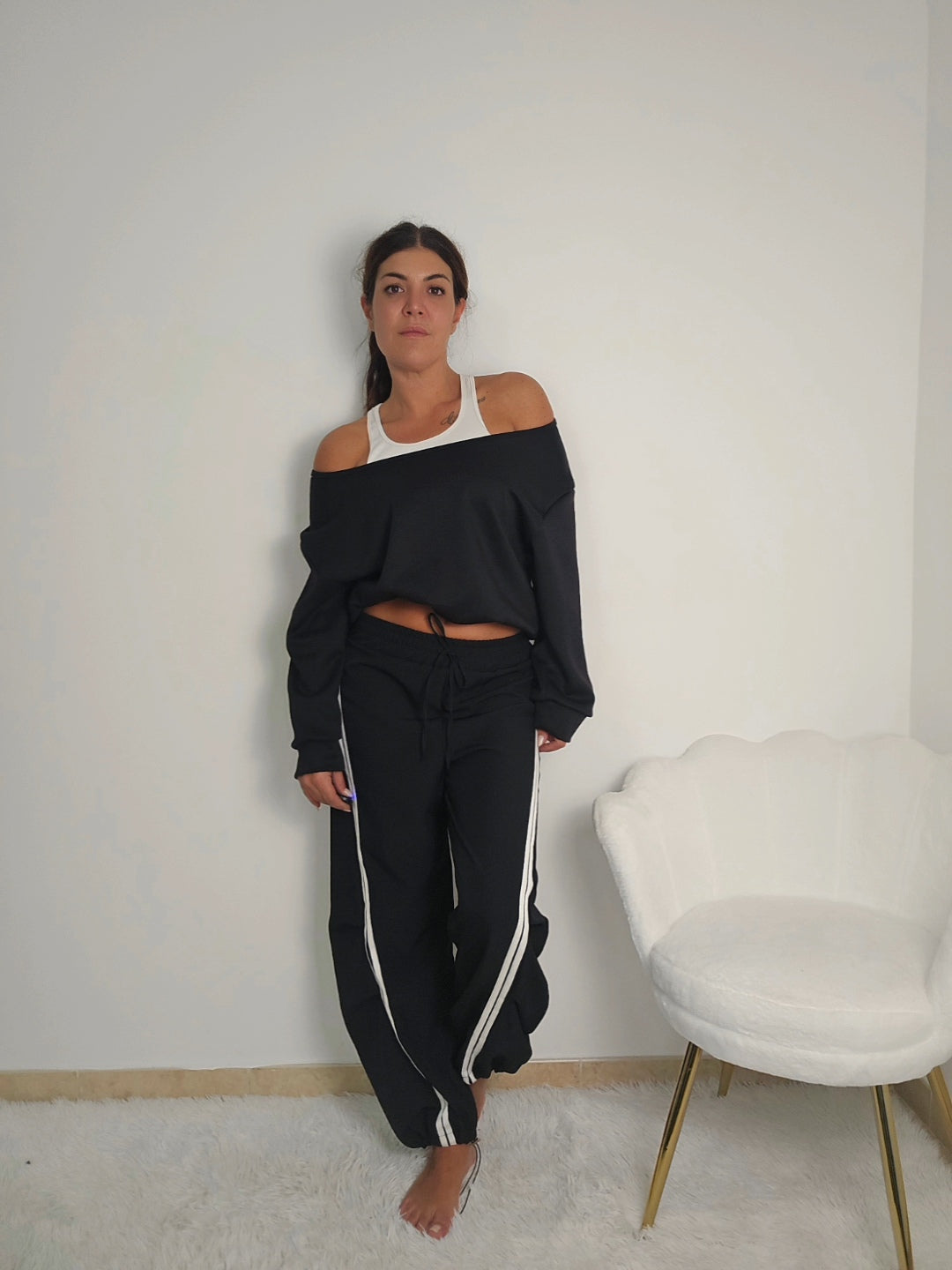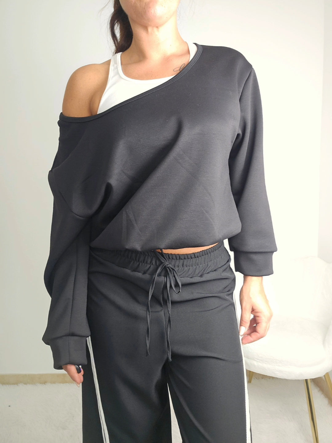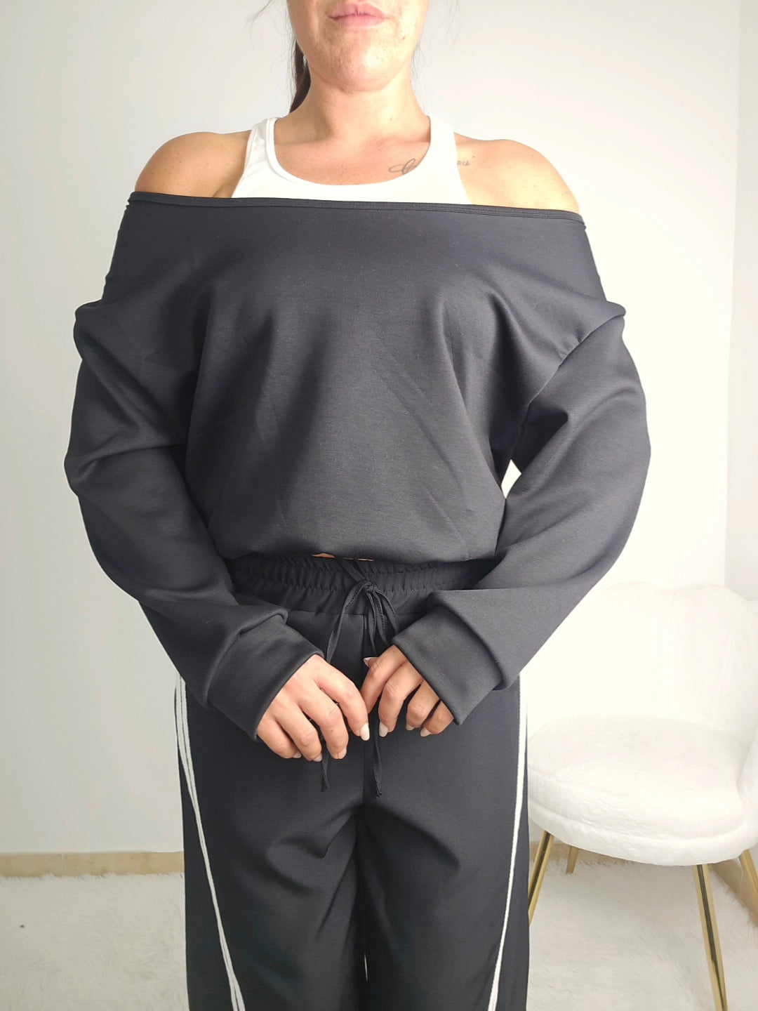 Questa felpa unisce comfort e versatilità, perfetta per chi desidera un capo adatto sia al relax che a uno stile casual e contemporaneo. Il design ampio e oversize offre libertà di movimento, mentre lo scollo versatile permette di indossarla in modi differenti. L’elastico in vita assicura una vestibilità che si adatta al corpo senza costringere, garantendo comodità e un look sempre curato.