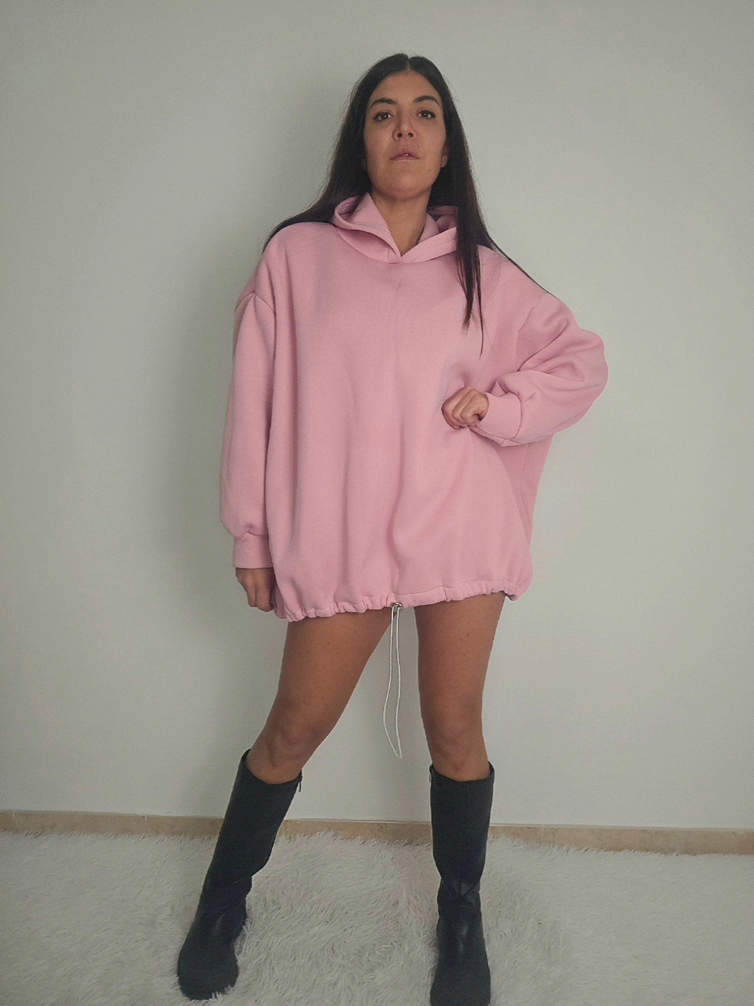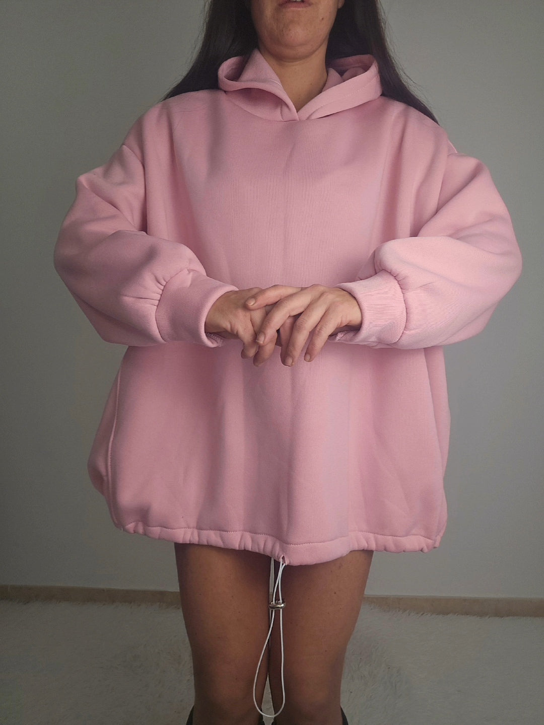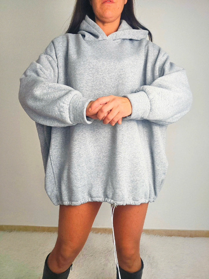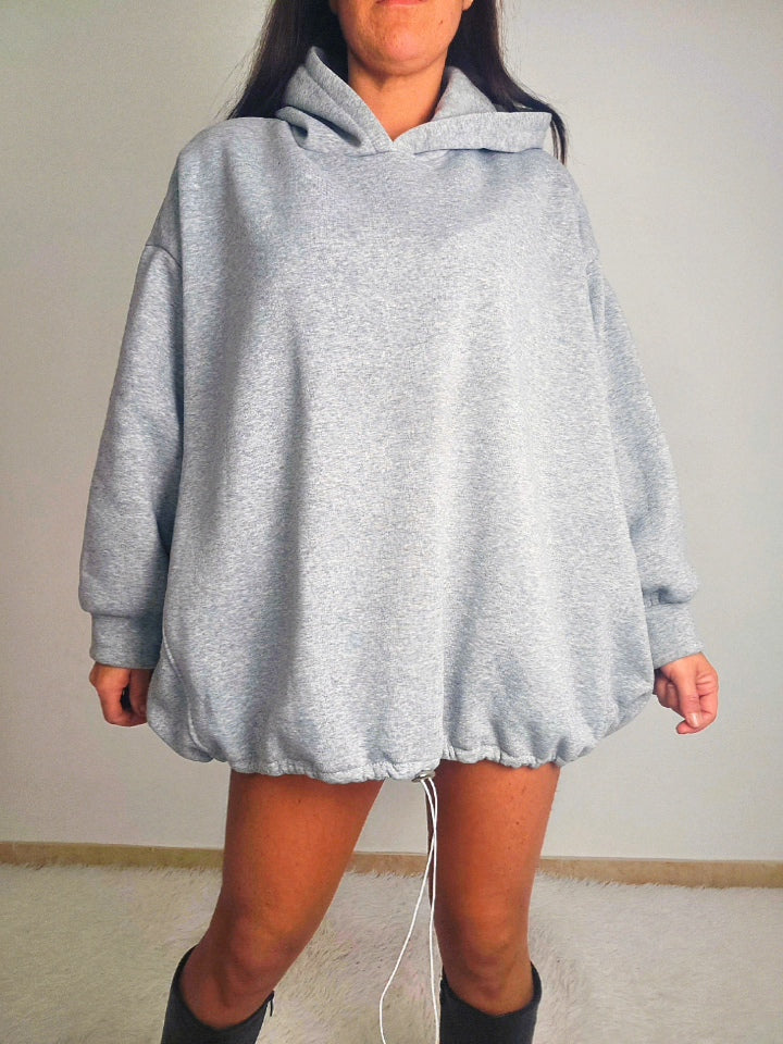 Maxi felpa in morbido tessuto felpato che garantisce calore e comfort durante tutto il giorno. Caratterizzata da un cappuccio posteriore che aggiunge un tocco di originalità al design, è perfetta per chi ricerca uno stile sportivo senza compromessi sull'eleganza. L'elastico regolabile in basso consente di personalizzare la larghezza secondo le tue preferenze, assicurando una vestibilità impeccabile. Un capo versatile che unisce praticità e raffinatezza, ideale per il tempo libero e le occasioni casual.