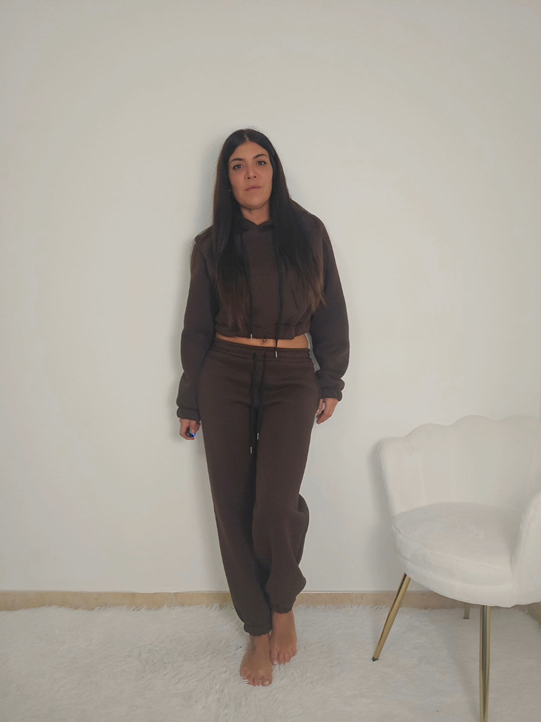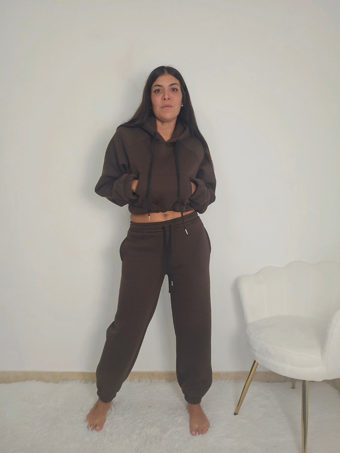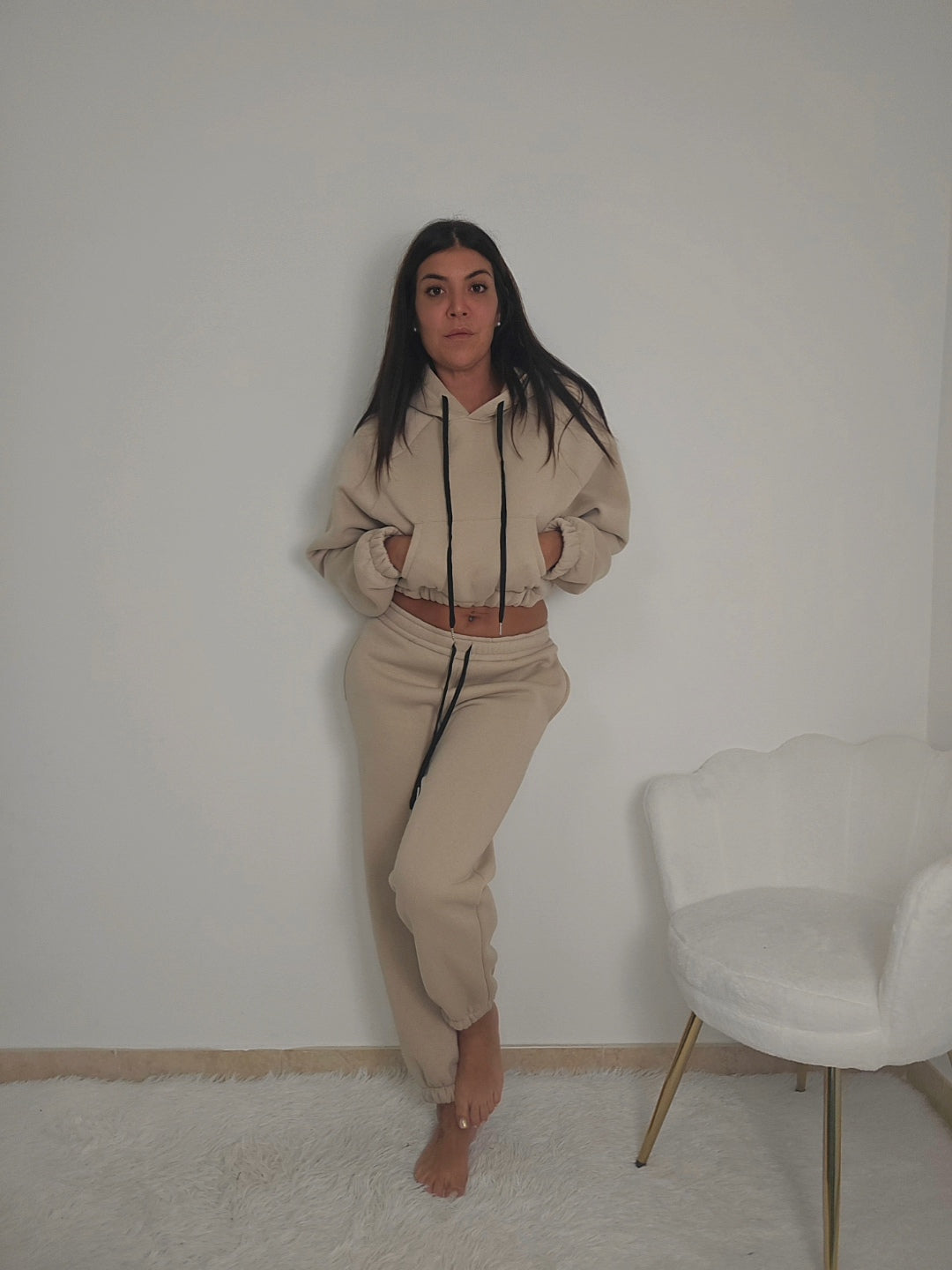 Scopri l'essenza del comfort senza compromessi sullo stile con questo completo felpato. Il tessuto morbido e caldo, felpato all'interno, garantisce una sensazione di calore e comfort ideale per giornate di relax, brunch informali o un look sportivo ma raffinato. La felpa con cappuccio presenta un elastico in vita e un pratico tascone frontale, mentre il pantalone è dotato di elastici super elasticizzati in vita e alle caviglie, assicurando una vestibilità perfetta e adattabile a tutte le forme. Un equilibrio perfetto tra funzionalità e design.