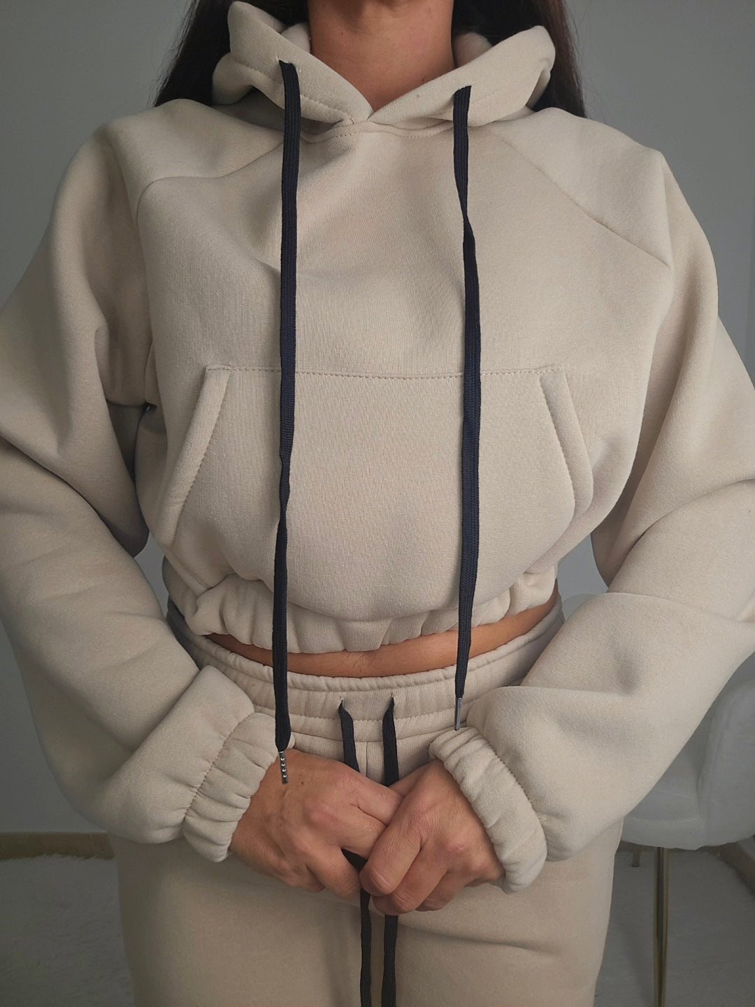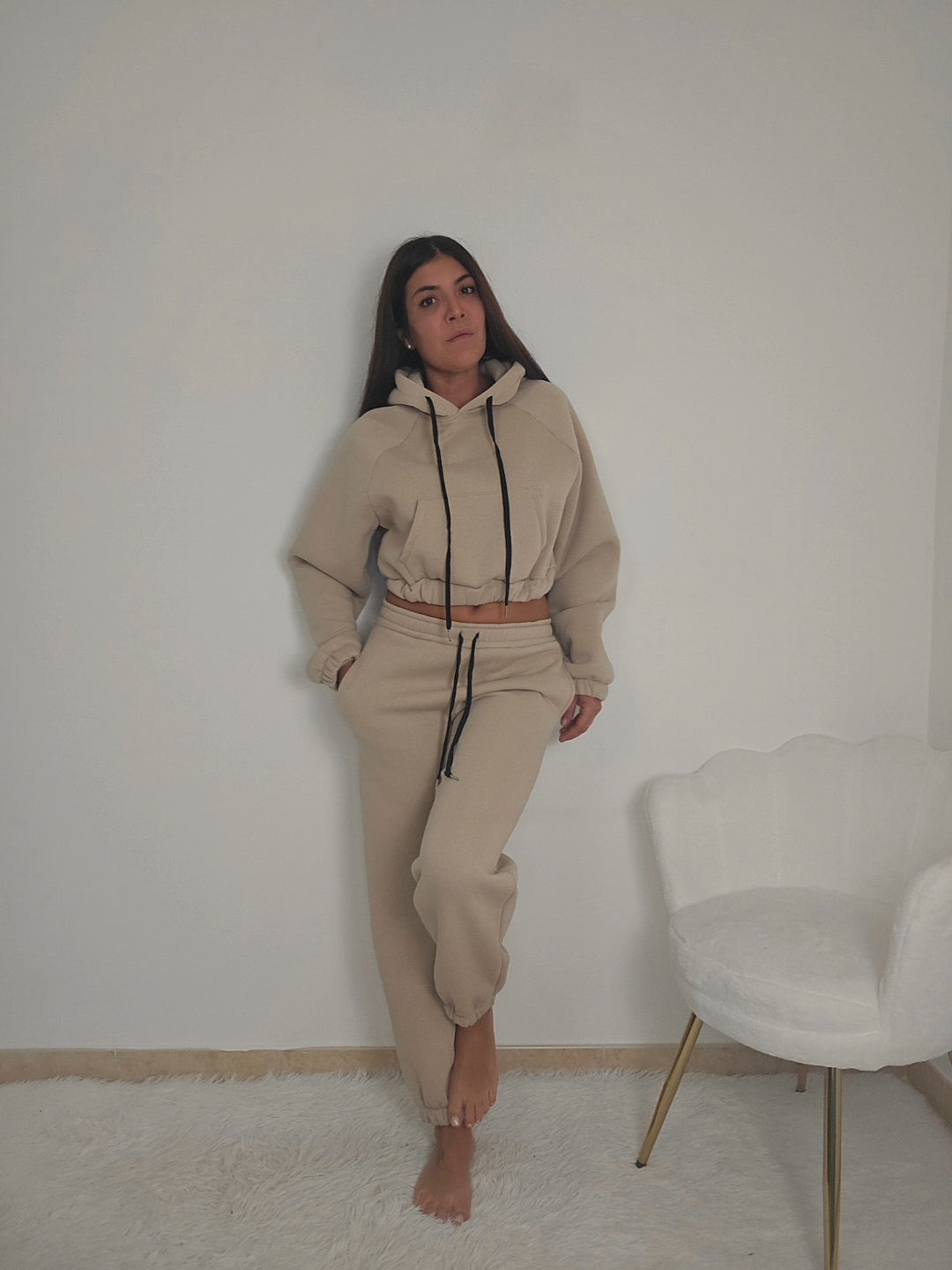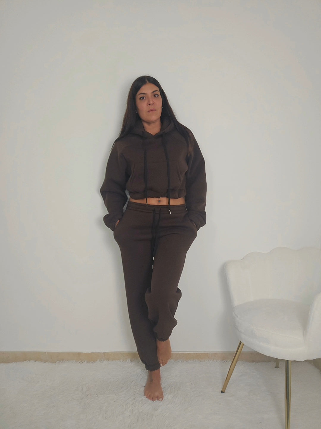 Scopri l'essenza del comfort senza compromessi sullo stile con questo completo felpato. Il tessuto morbido e caldo, felpato all'interno, garantisce una sensazione di calore e comfort ideale per giornate di relax, brunch informali o un look sportivo ma raffinato. La felpa con cappuccio presenta un elastico in vita e un pratico tascone frontale, mentre il pantalone è dotato di elastici super elasticizzati in vita e alle caviglie, assicurando una vestibilità perfetta e adattabile a tutte le forme. Un equilibrio perfetto tra funzionalità e design.